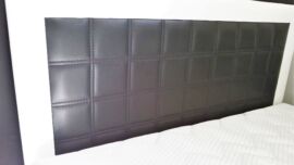 Nowoczesny zagłówek z przeszyciami dwuigłowymi.
